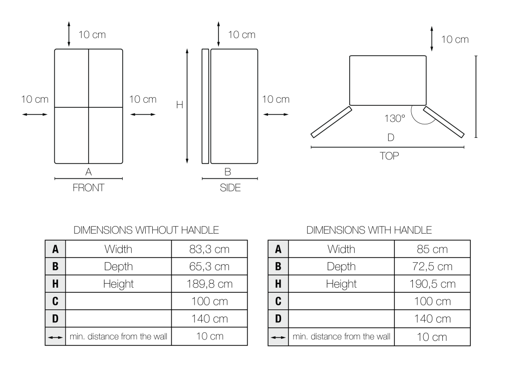 - Rozměry bez rukojeti: 83,3 x 65,3 x 189,8 cm