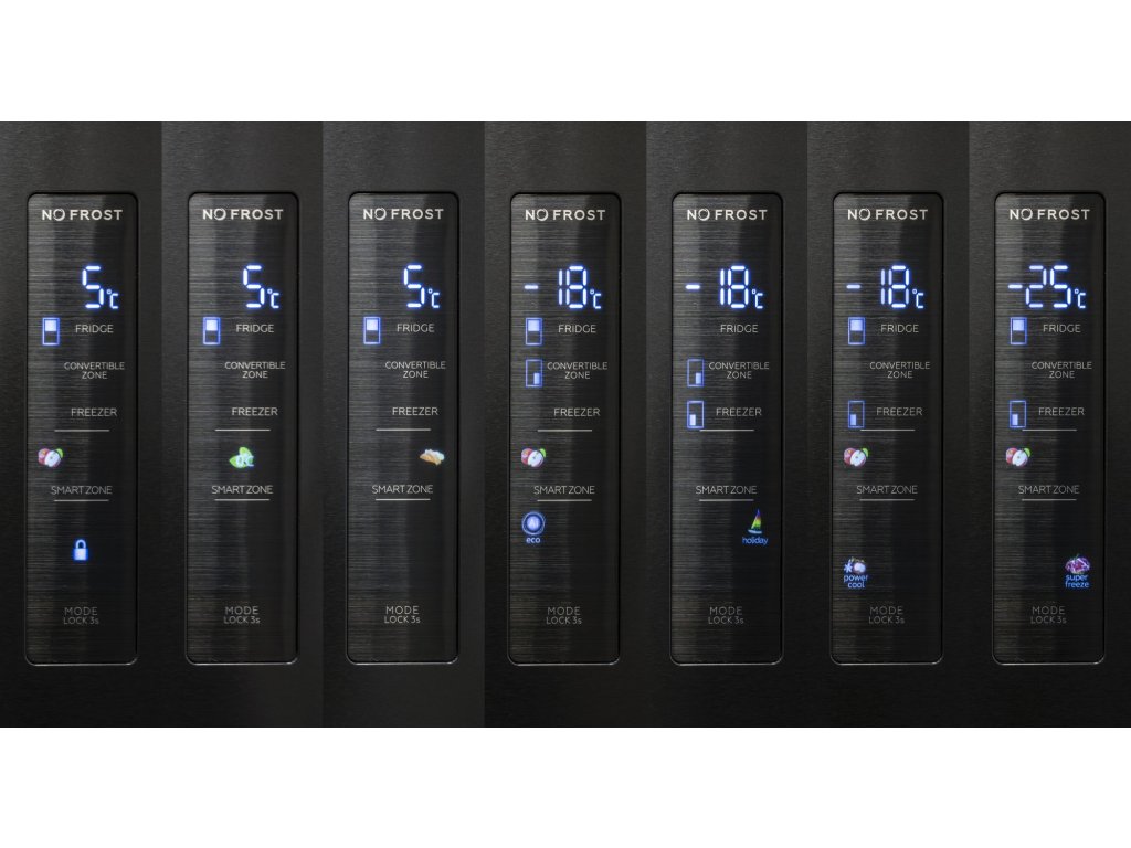 - Digitální zobrazení teploty pro chladicí a mrazicí část na dveřích