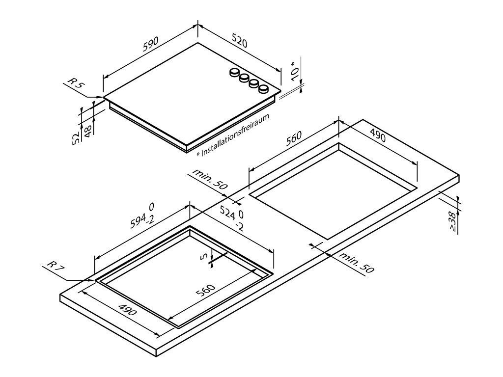 - Instalační rozměry (V × Š × H) 4,75 × 56,0 × 49,0 cm