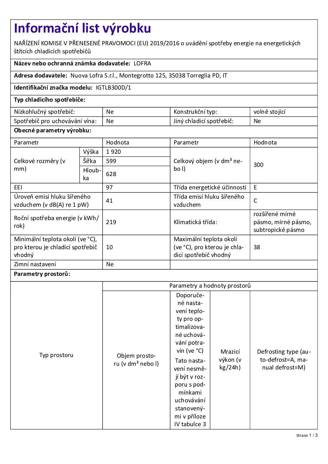 - Rozměry spotřebiče(V x Š x H): 192 x 59,9 x 52,8 cm
