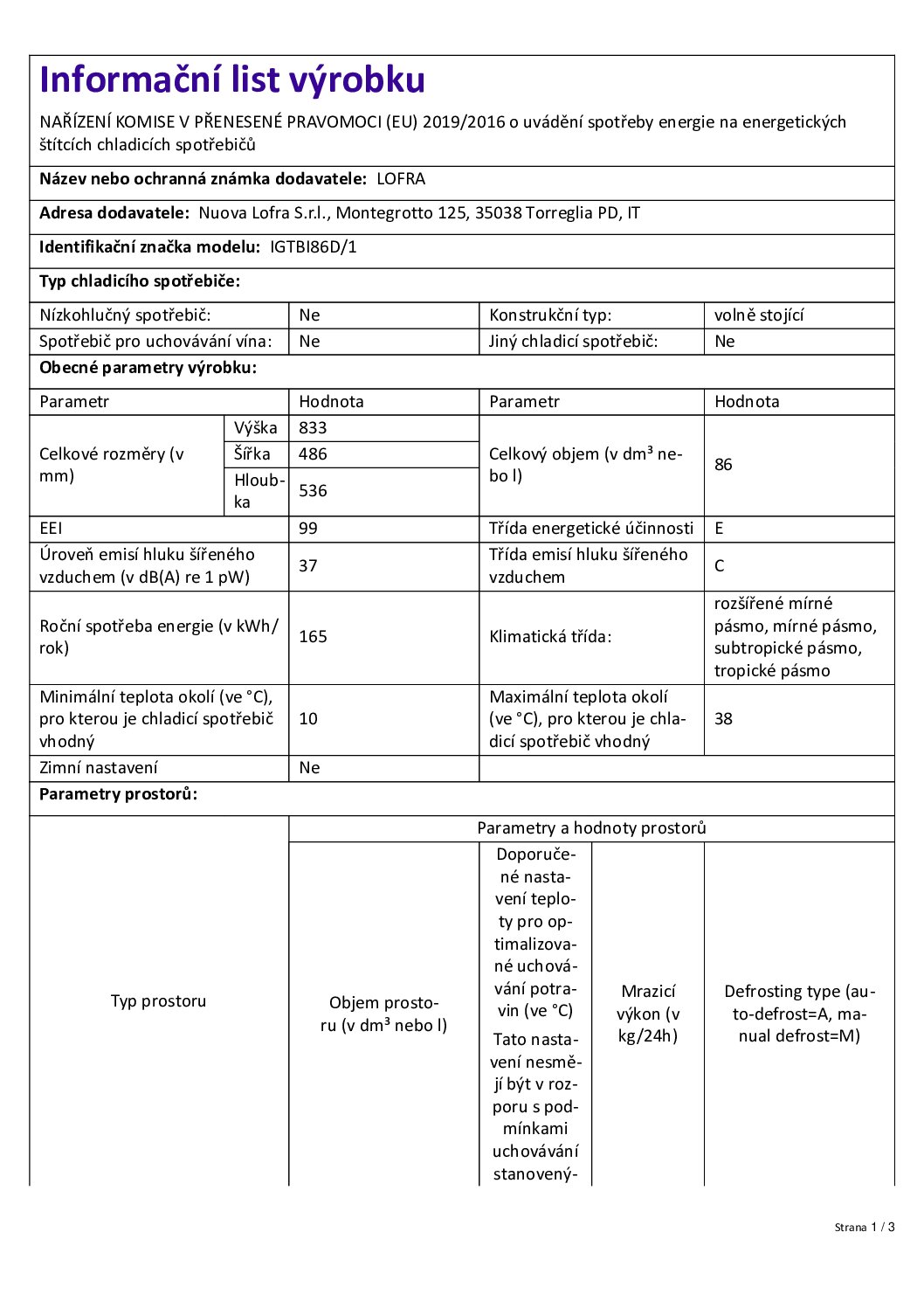 | Roční spotřeba energie: | 165 kWh/rok |