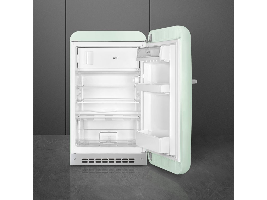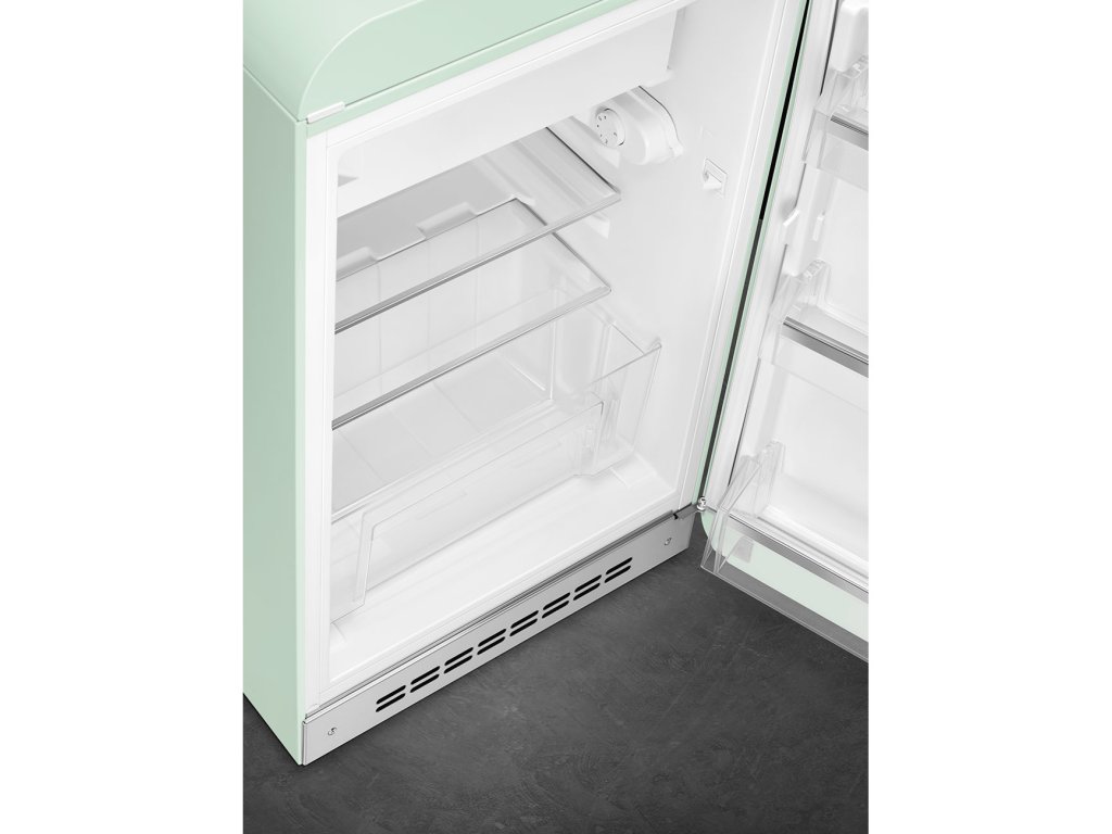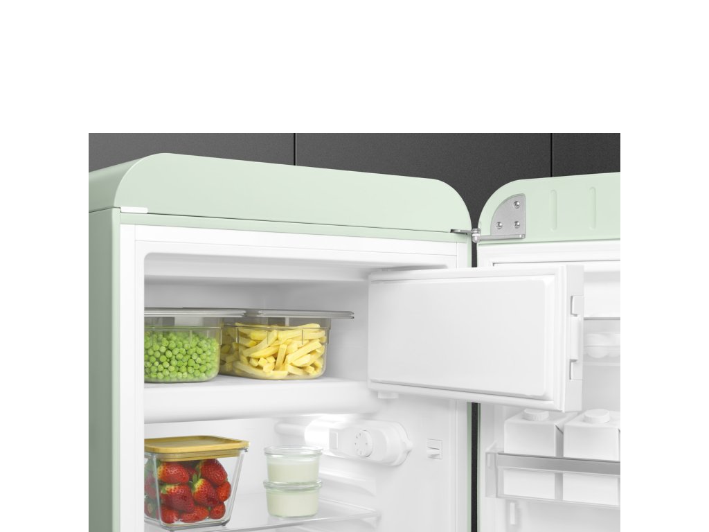 Jednodveřová lednice Smeg FAB10RPG6 s mrazícím boxem uvnitř, barva pastelově zelená , energetická třída D