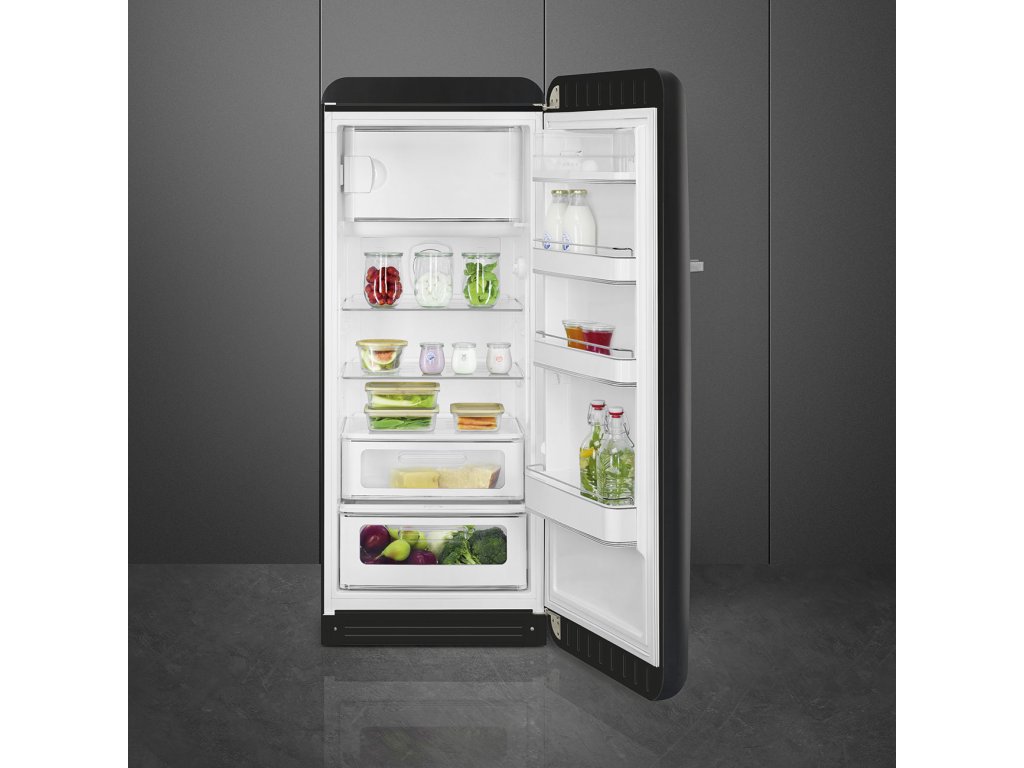Retro lednice Smeg z designové řady 50's Style Retro. Mrazák umístěný uvnitř lednice nahoře. Energetická třída C.