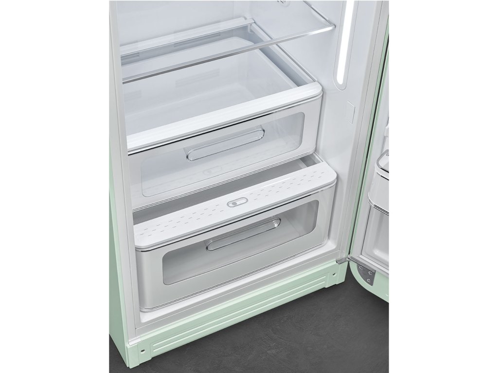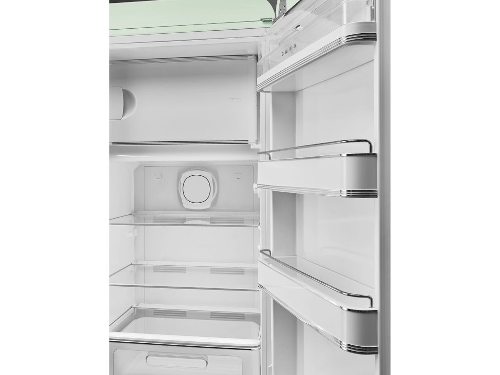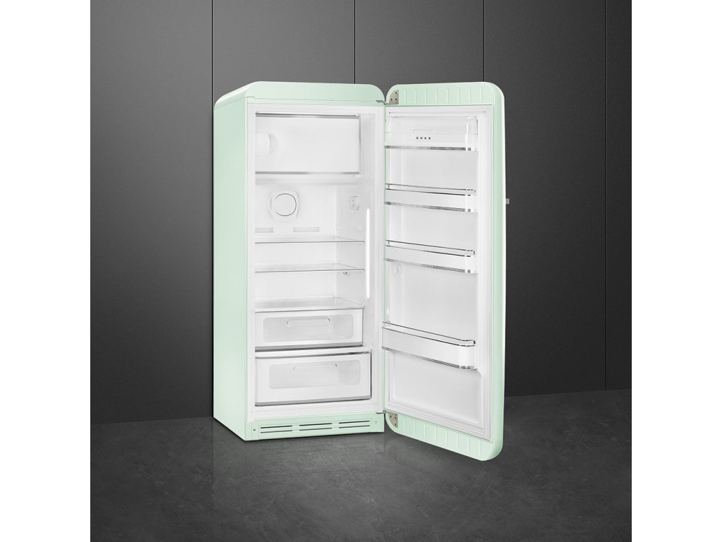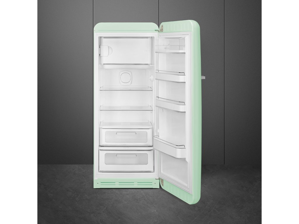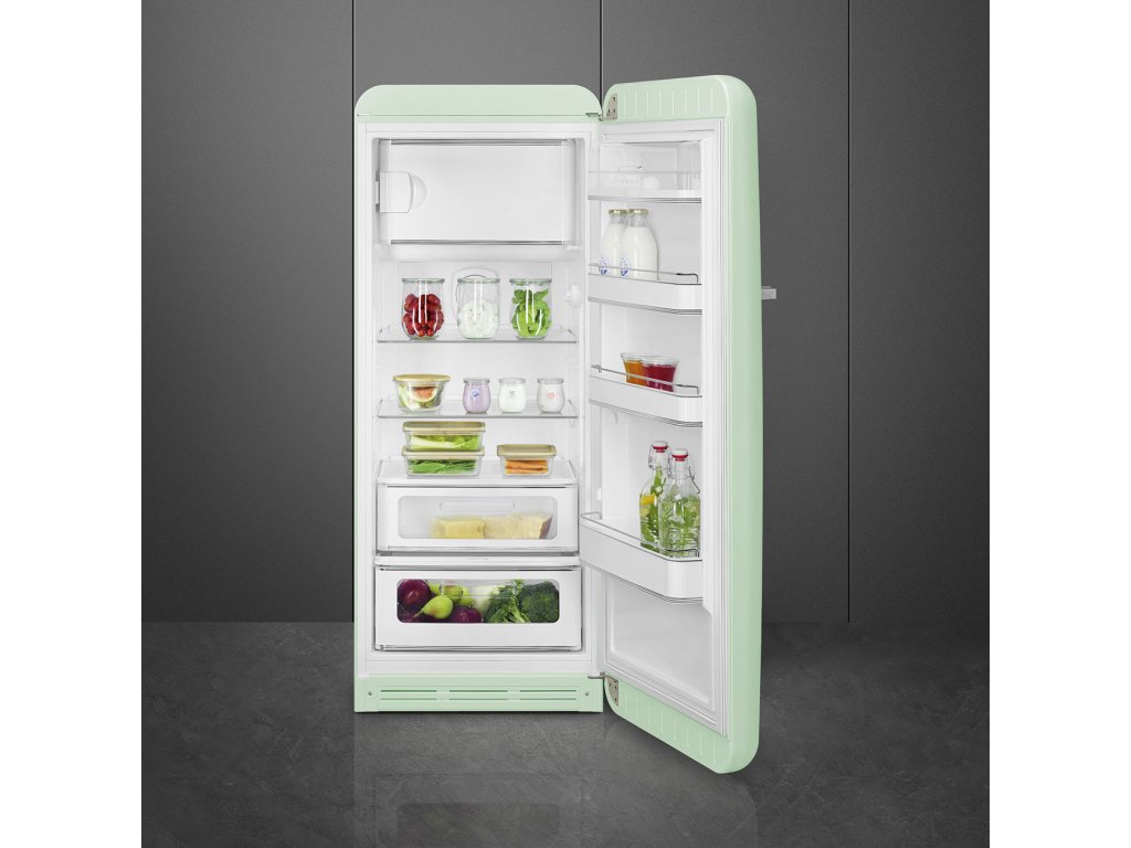 Retro lednice Smeg z designové řady 50's Style Retro. Mrazák umístěný uvnitř lednice nahoře.