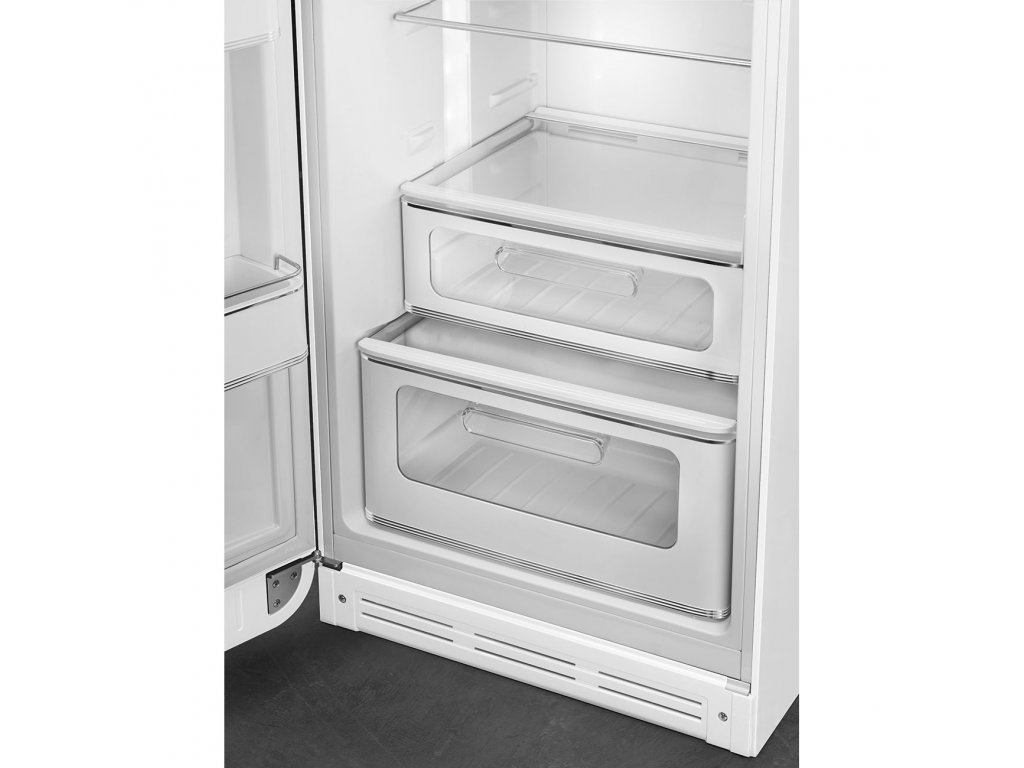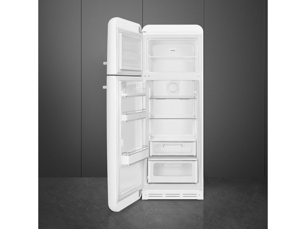 Chladnička značky Smeg ve stylu 50. let vytváří akcenty v kuchyni i kanceláři. Volně stojící chladničky jsou považovány za ikony stylu kvůli svému retrodesignu ve stylu 50. let, zaboleným liniím a vyklenuté přední části. Skvělým příkladem je svolně stojící chladnička s mrazicím prostorem FAB30. Kombinovaná chladnička o šíce 60 cm nabízí chladicí prostor o celkovém užitném objemu 229 litrů, který je doplněn mrazicím prostorem o objemu 72 litrů. Mrazicí prostor se nachází v horní části spotřebiče a má identický vzhled.