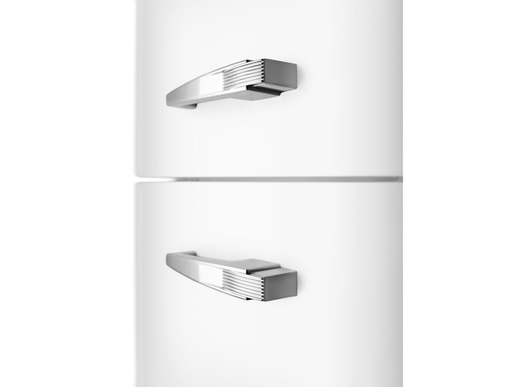 Zaoblené hrany a chromované detaily dokonale ladí s vnitřní i vnější stranou dvířek chladničky.