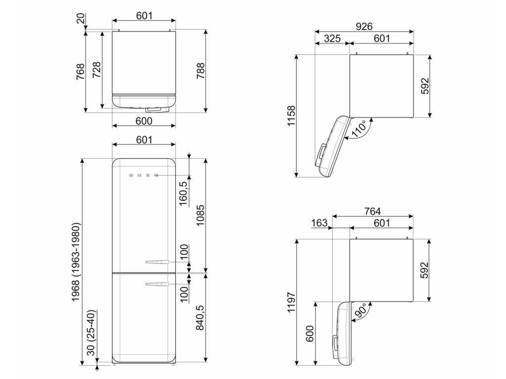 - Šířka výrobku s maximálním otevřením dvířek: 926 mm