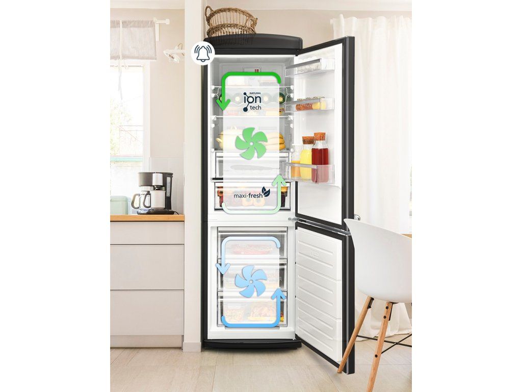 Samostatný systém cirkulace vzduchu v odděleních chladničky a mrazničky. Teplý vzduch je okamžitě odváděn ven, zatímco chladný vzduch je rovnoměrně vháněn dovnitř, což zajišťuje optimální provoz spotřebiče.
