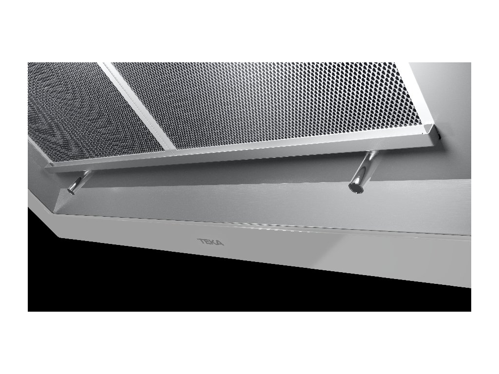 Díky pístům zůstává skleněné křídlo otevřené a fixované v konkrétní poloze, což zvyšuje bezpečnost při čištění digestoře. Pro lepší sanitaci lze vyjímatelné části mýt v myčce nádobí.