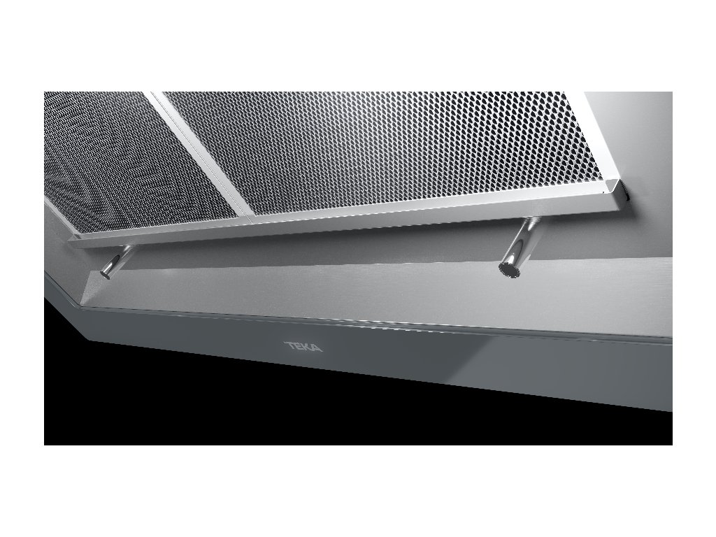 Díky pístům zůstává skleněné křídlo otevřené a fixované v konkrétní poloze, což zvyšuje bezpečnost při čištění digestoře. Pro lepší sanitaci lze vyjímatelné části mýt v myčce nádobí.