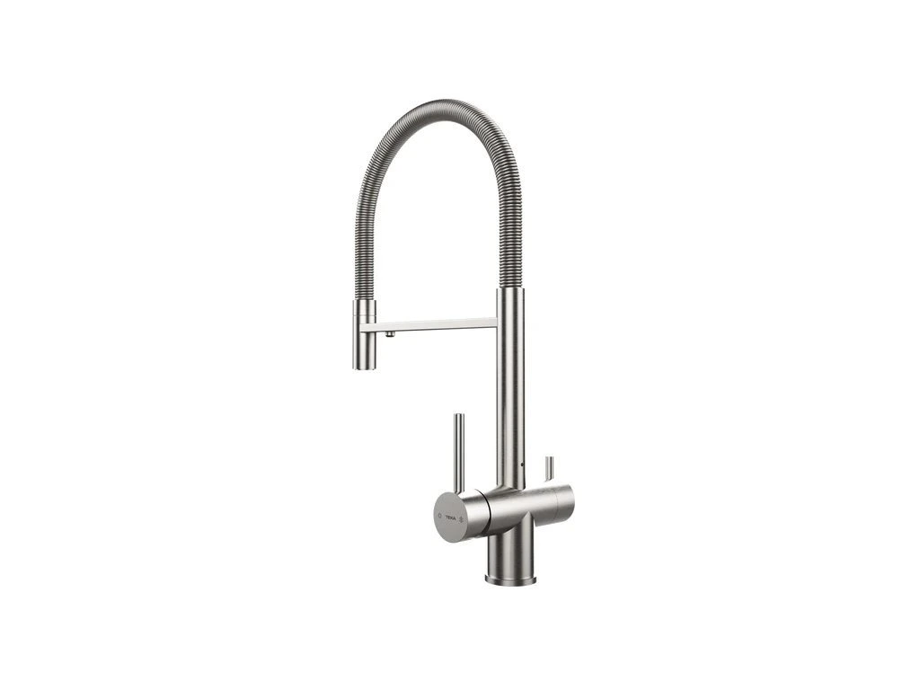 - Profesionální kuchyňská baterie s vysokým ramínkem, dvojitou pákou a flexibilní koncovkou