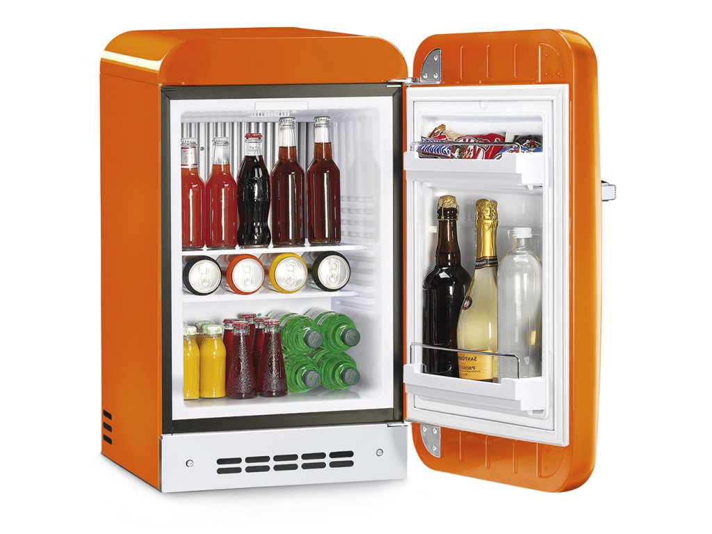 Chladnička Smeg FAB5ROR6, je minibar bez mrazáku, barva oranžová. Užitný objem chladničky je 34 litrů.