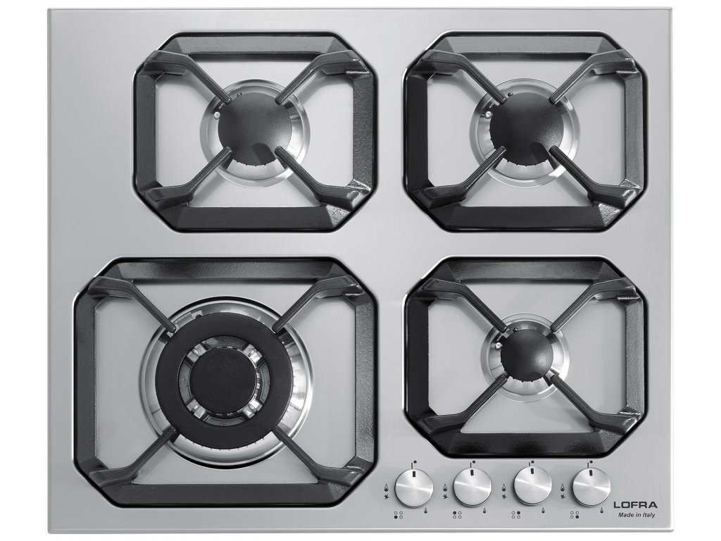 Plynová varná deska Lofra HLS6G0, šíře 60 cm, vestavná, barva nerez, doplňky nerez, 4 hořáky z toho 1 turbo, ovládání knoflíky v předu. Rozměry výrobku (mm): 598 x 508 x 45 mm.
