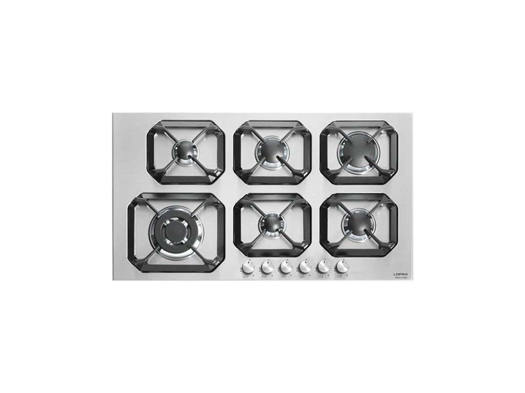 Plynová varná deska Lofra HLS9S0, šíře 90 cm, vestavná, barva nerez, doplňky nerez, 5 hořáků + 1 turbo, ovládání knoflíky v předu. Rozměry výrobku (mm): 900 x 500 x 45 mm