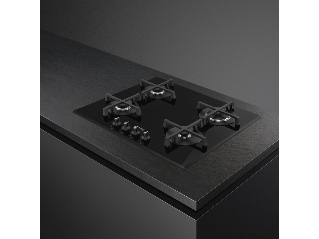 - Zesílená základna: Zesílená základna, vyvinutá exkluzivně společností Smeg, se skládá z ocelové vrstvy připevněné ke spodní straně skleněného povrchu všech plynových nebo sklokeramických varných desek.