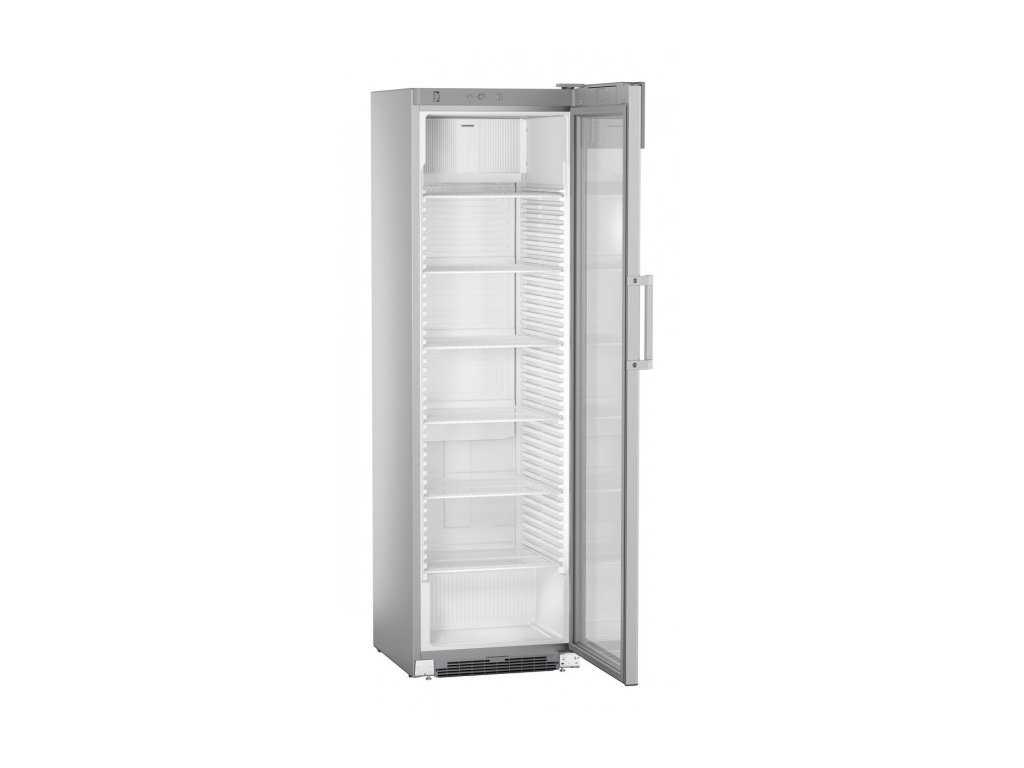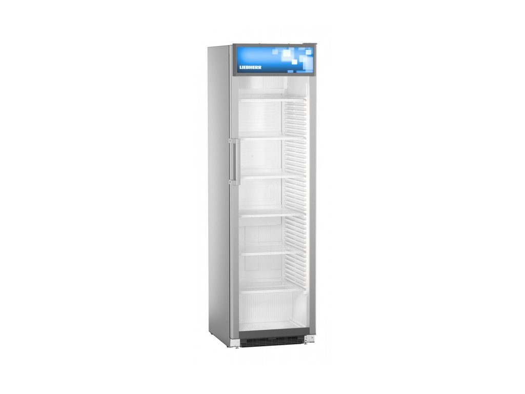 Chladnička pro prodej 441 litrů; ventilační chladicí systém; en.tř. C; dveře s izolačním sklem; vypínatelné vnitřní, boční LED osvětlení; světelný billboard na dveře (rozměr billboardu: 518 x 164,5 mm); rozsah chlazení: mezi + 2 / + 12 ° C; mechanické ovládání; analogové zobrazení teploty; vnější ocelový plášť s šedým práškovým nástřikem; jednodílný tepelně tvarovaný polystyren (ekologický) vnitřní plášť; 6 bílých ocelových roštů s ochranným potahem a s funkcí STOP; žebrovaná podlahová deska; výšku polic lze nastavit do 30 mm; nosnost na polici: max. 45 kg; kapacita: 608 hliníkových plechovek 0,33l (čelní: 7), 304 PET lahví 0,5l (čelení: 7); dveře se automaticky zavřou a směr otevírání lze obrátit; hygienická, vyměnitelná izolace dveří; hliníková rukojeť; automatické odmrazování; 1 pár předních vyrovnávacích nožiček; chladivo bez FCKW-FKW (R 600a) a izolace stěn; venkovní teplota: mezi + 10 / + 35 ° C - klimatická třída CC2; roční spotřeba energie: 580,11 kWh; Třída energetické účinnosti C.