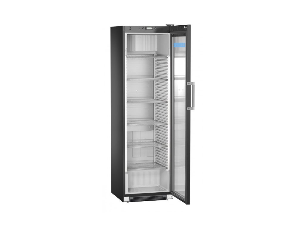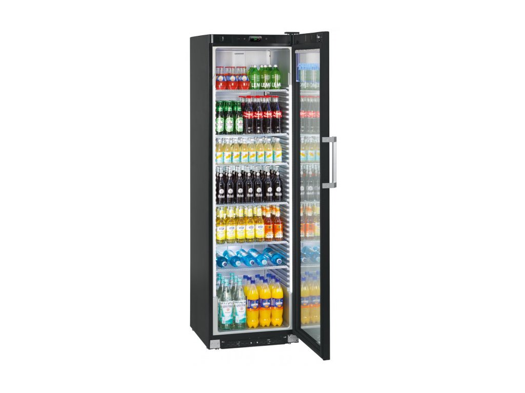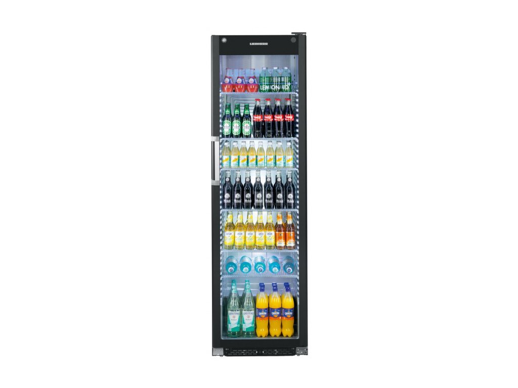Chladnička pro prodej 441 litrů; ventilační chladicí systém; en.tř. D; uzamykatelné izolované skleněné dveře, vypínatelný interiér, oboustranné, stmívatelné LED osvětlení; okrajově osvětlená reklamní plocha s obrysovým frézováním namontovaná na dveřích; rozsah chlazení: mezi + 2 / + 12 ° C; elektronické řízení (EMS - Energy Management System); digitální zobrazení teploty; funkce optického a akustického alarmu: vnitřní teplota je příliš vysoká a dveře zůstávají otevřené; vnější ocelový plášť s černým práškovým nástřikem; jednodílný, tepelně tvarovaný, šedý polystyren (ekologický) vnitřní plášť; 6 ocelových roštů s ochranným nátěrem a funkcí STOP; žebrovaná podlahová deska; výšku polic lze nastavit do 30 mm; nosnost na polici: max. 45 kg; kapacita: 608 hliníkových plechovek 0,33l (čelní: 7), 304 PET lahví 0,5l (čelení: 7); dveře se automaticky zavřou a směr otevírání lze obrátit; hygienická, vyměnitelná izolace dveří; hliníková rukojeť; automatické odmrazování; 1 pár předních vyrovnávacích nožiček; chladivo bez FCKW-FKW (R 600a) a izolace stěn; venkovní teplota: mezi + 10 / + 35 ° C - klimatická třída CC2; roční spotřeba energie: 687,30 kWh; Třída energetické účinnosti D