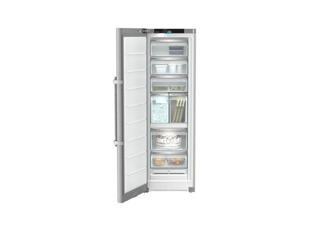 Volně stojící mraznička s NoFrost, objem 277l, BluPerformance, IceTower, IceMaker, Touch&Swipe Display, SoftSystem, integ. SmartDevice, VarioSpace, SpaceBox, SuperSilent, madlo s integ. mechanikou, SmartSteel