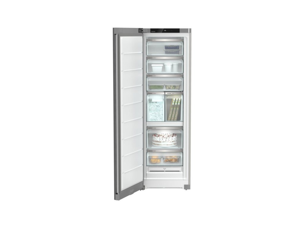 Volně stojící mraznička s NoFrost, objem 277l, BluPerformance, IceTower, IceMaker, EasyOpen,TouchDisplay, SmartDevice ready, VarioSpace, SpaceBox, zapuštěné madlo, SteelFinish