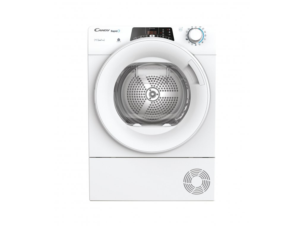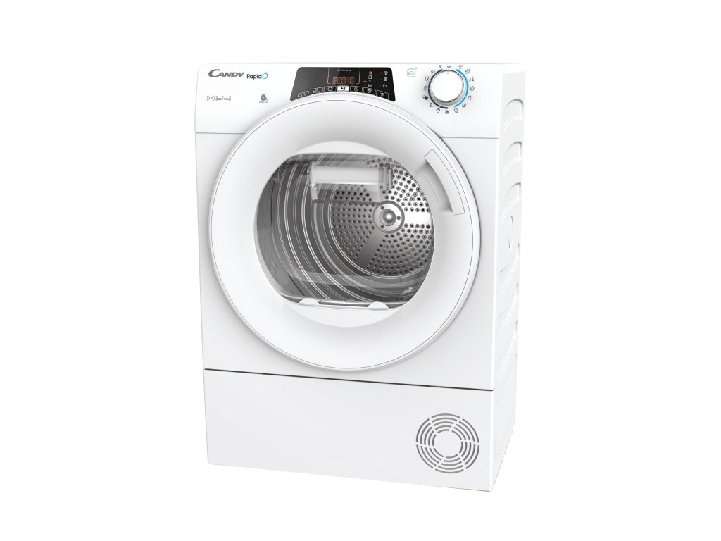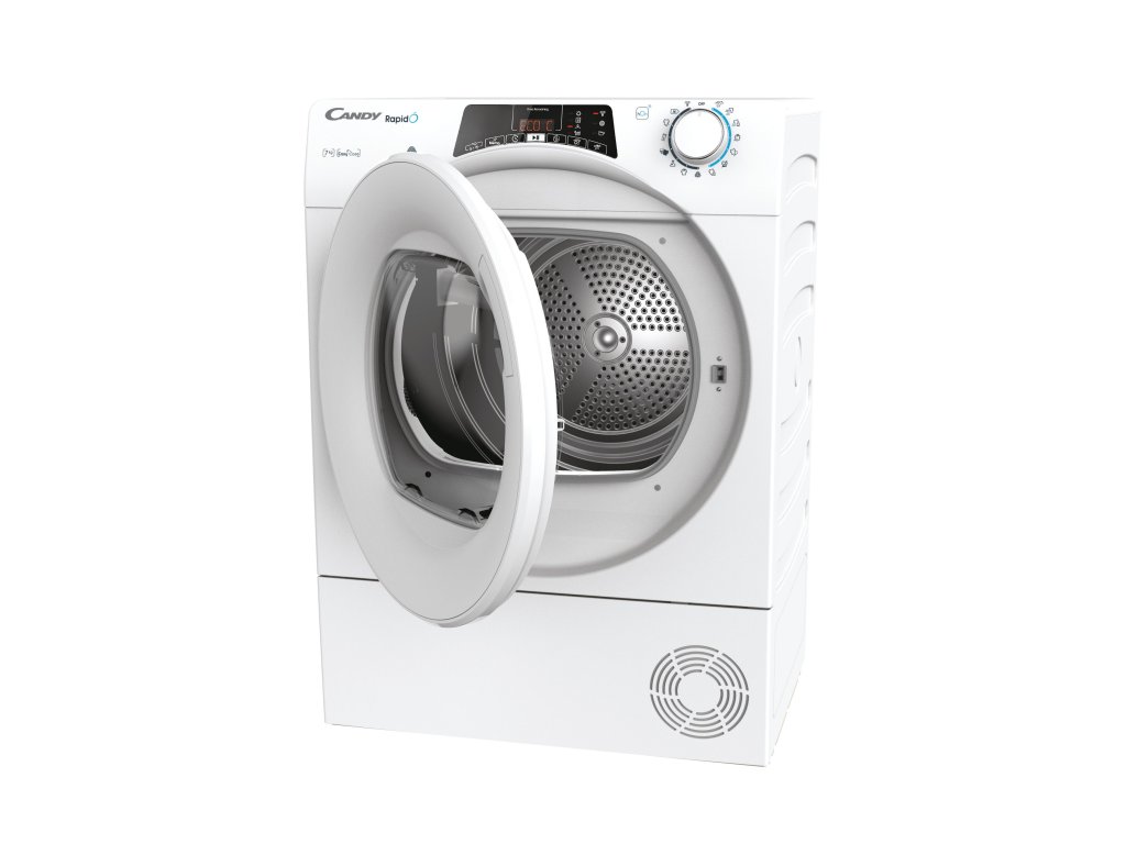 Předem plněná kondenzační sušička Candy RO4H7A1TEX-S , kapacita 7 kg , energetická třída A+ (269 kWh) , tepelné čerpadlo , hlučnost 67 dB(A) , SLIM, RapidÓ. Big Digit dotykový displej, textový displej v češtině. Wifi + Bluetooth připojení - možnost ovládat sušičku přes aplikaci Simply Fi, kompatibilní s hlasovými aplikacemi Alexa (Amazon) a Google (pouze v ENG).Tepelné čerpadlo, senzorové sušení a časované sušení, Easy Case - zásobník na vodu . 14 programů základních + Wifi programy, Woolmark. Nerez buben, odložený start (až 24h). Barva: Bílá + bílá dvířka, rozměry VxŠxH 85 x 60 x 46,5 cm, váha 37,5 kg.
