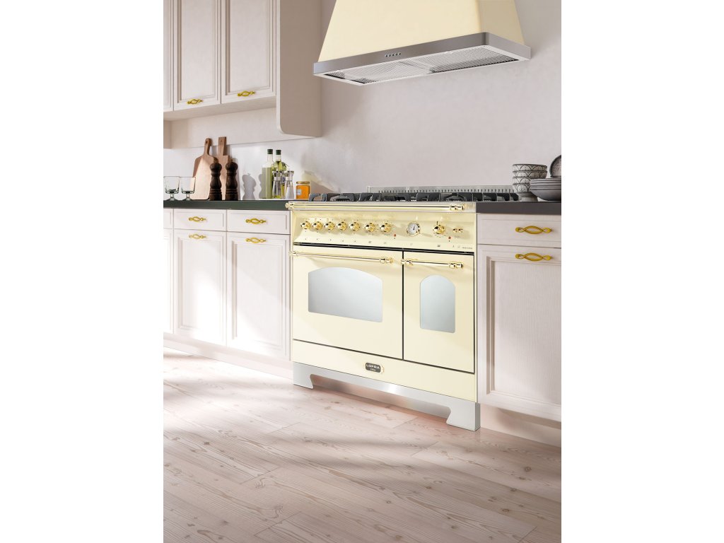 Retro komínový odsavač par Lofra DOLCEVITA 120 IVORY, barva krémová - slonová kost - IVORY, energetická třída A, šíře 120 cm, 4 rychlosti, maximální odtah 800m3/hodinu, 2x halogen osvětlení, dálkové ovládání, rozměry Š x V x H: 1.200 x 990 - 1.290 x 500 mm.