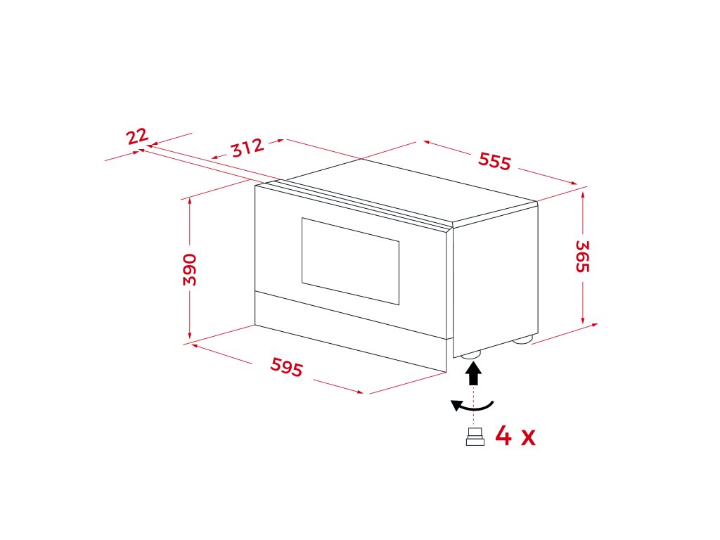 Pro snadnou instalaci mikrovlnné trouby je její čelní rámeček ke spotřebiči již připevněn a proces montáže je tak výrazně rychlejší. Naši novou mikrovlnnou troubu můžete mít připravenou k provozu za pouhých 5 minut pomocí 4 šroubů.