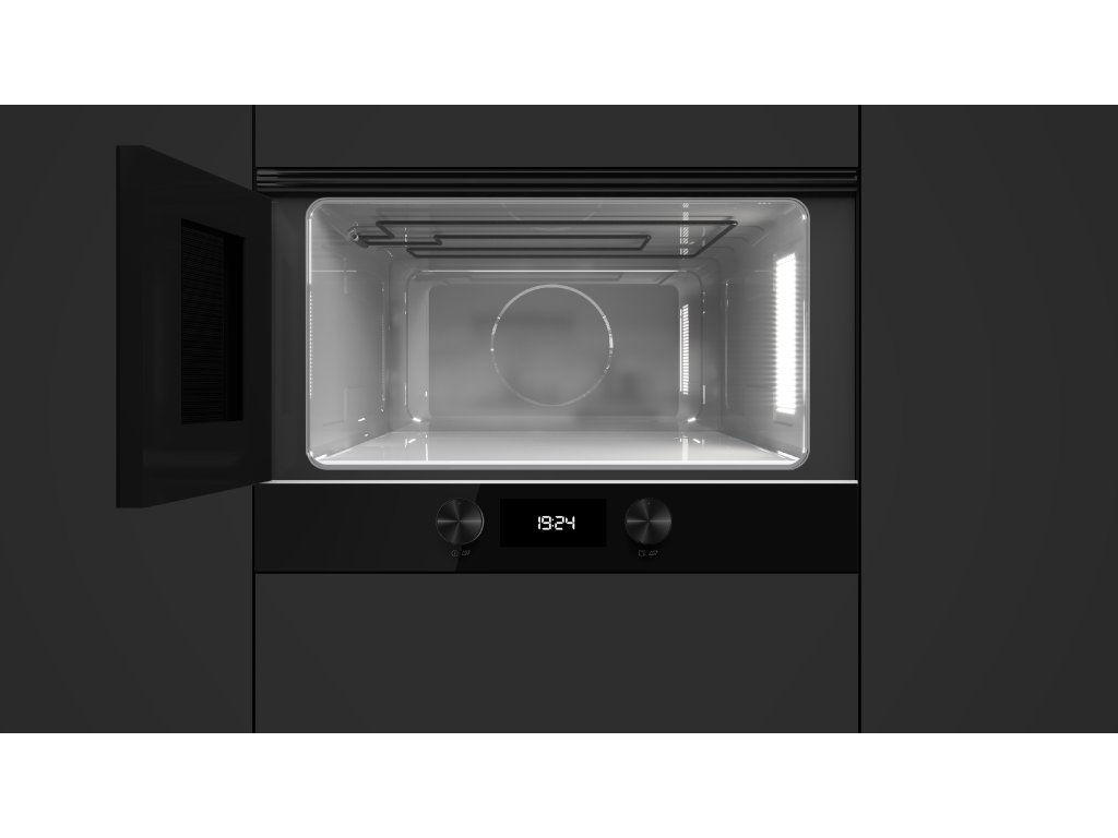 Trouby a mikrovlnné trouby FullBlack Edition, vyrobené z elegantního černého skla s tmavými nerezovými akcenty, vyzařují moderní eleganci. Kombinace materiálů vytváří výrazný kontrast, který je ideální pro vylepšení jakéhokoli kuchyňského interiéru.