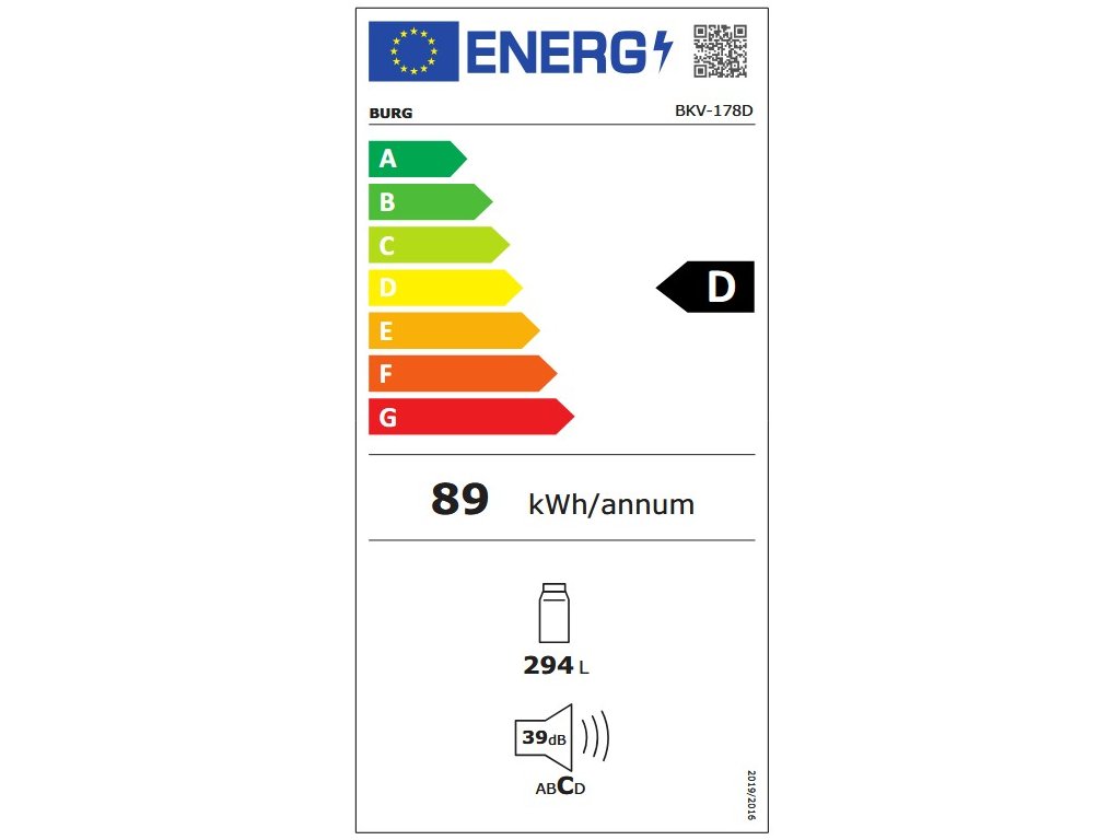 S roční spotřebou 89 kWh a energetickou třídou D je zařízení úsporné a vhodné pro každodenní použití. Tichý provoz s hlučností 39 dB umožňuje příjemné používání i v otevřených obytných prostorách.