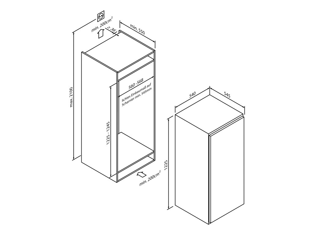 - Rozměry výklenku : 122,5 - 124,5 x 56,0 -56,8 x 55,0 cm