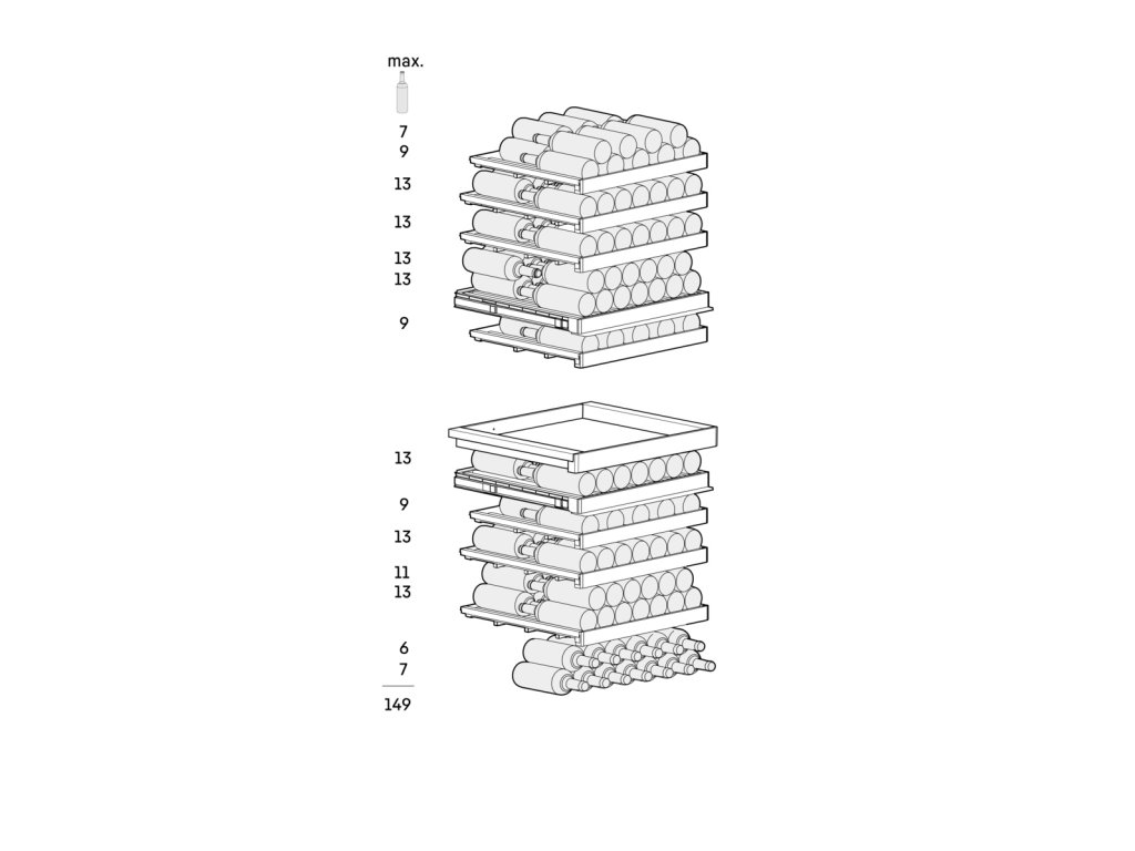 Maximální kapacita. S temperovací vinotékou Liebherr bude organizace vaší rozrůstající se sbírky vín snadná. Interiér byl navržen tak, aby byly lahve na dřevěných policích uloženy hrdly k sobě, díky čemuž lze naplno využít jeho kapacitu. To znamená, že i když se bude vaše sbírka cenných vín stále rozrůstat, vždy najdete místo pro další lahev. Můžete tak popustit uzdu své sběratelské vášni.